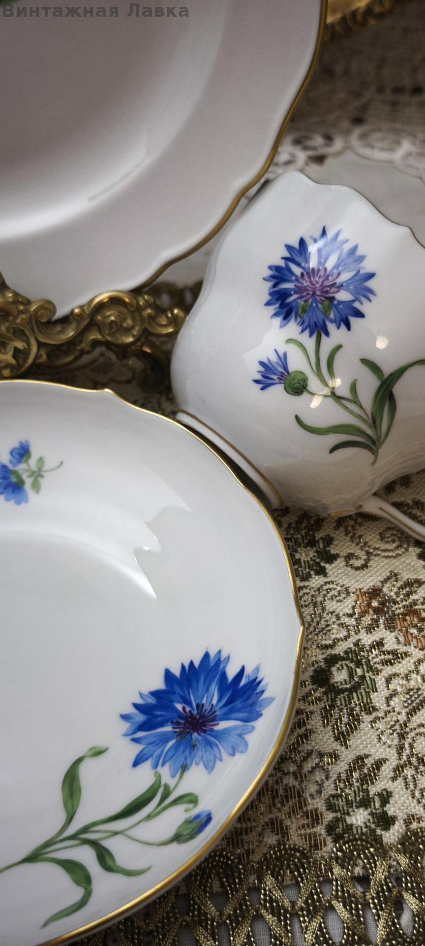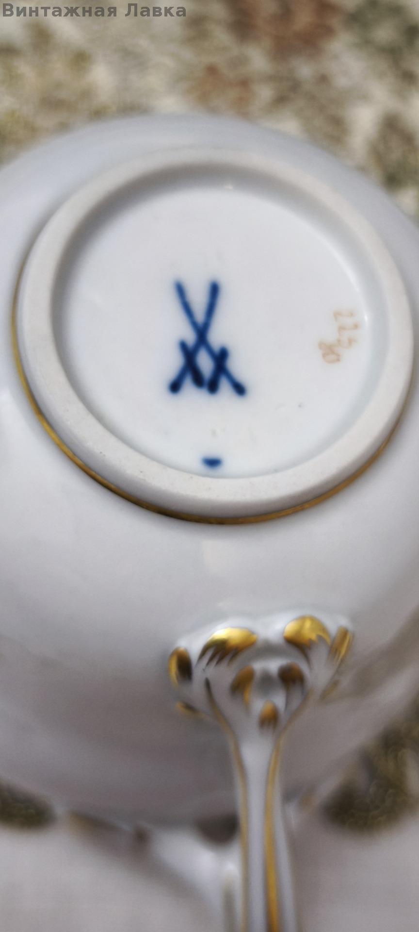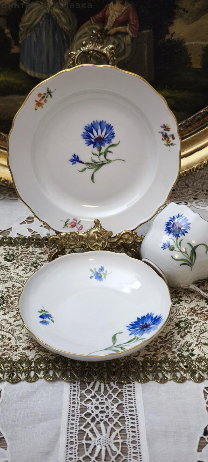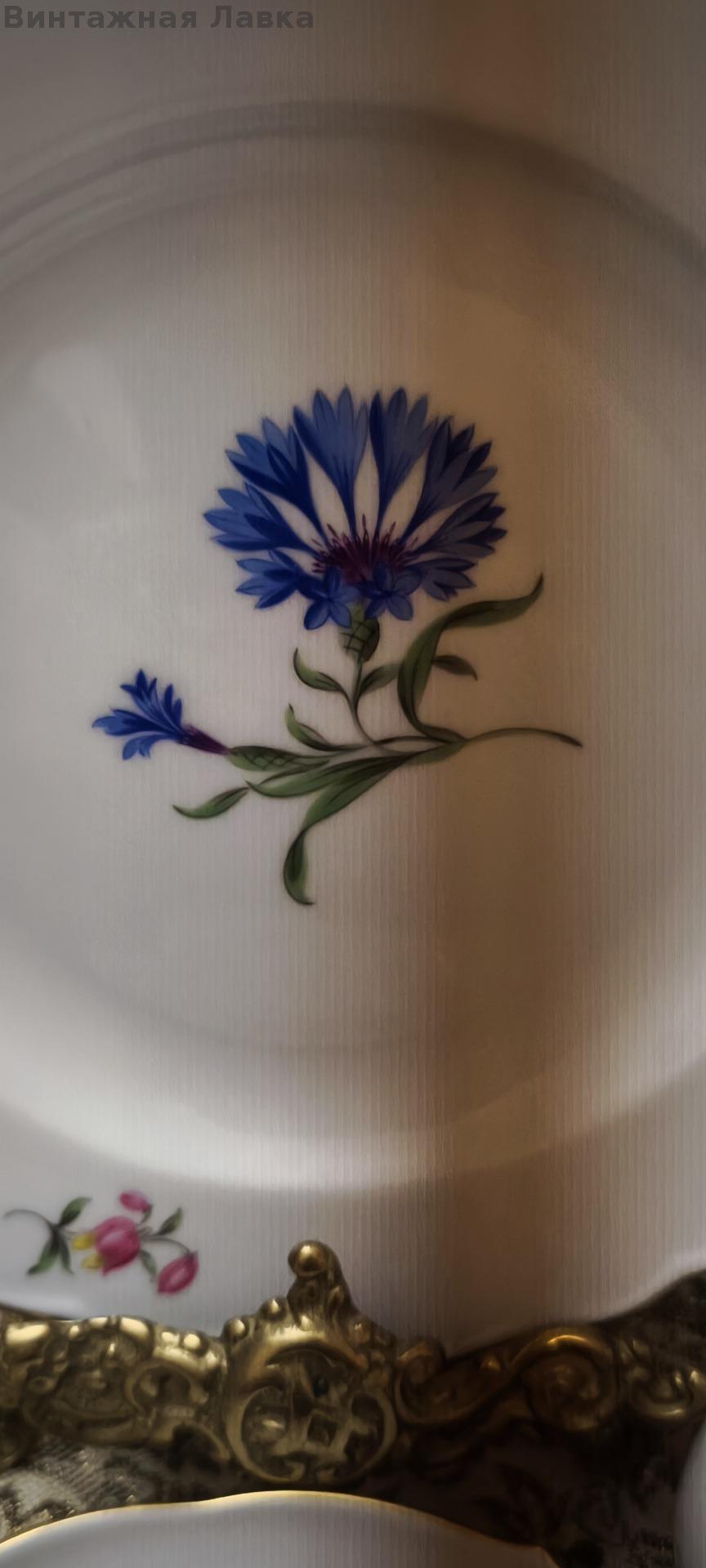 Ручная цветочная роспись, волнистый край с золотом, классическая форма Meissen.