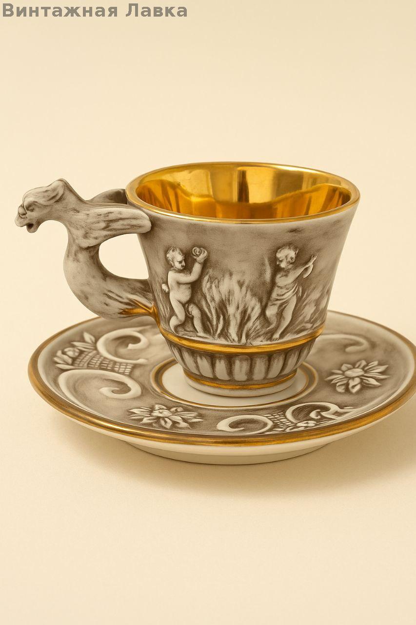 Фарфоровая чашка с блюдцем Capodimonte Italy, в стиле Richard-Ginori
