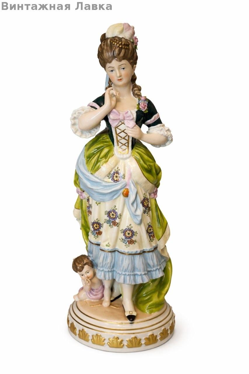 Фарфоровая фигурка «Дама с путти» — Scheibe-Alsbach (Германия)