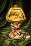 -Фарфоровый абажур с ручной росписью мягко рассеивает свет, создавая камерную, спокойную атмосферу.