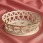 Белоснежный фарфор с изысканным ажурным узором из переплетённых колец, тонкой золотой окантовкой и голубыми линиями.