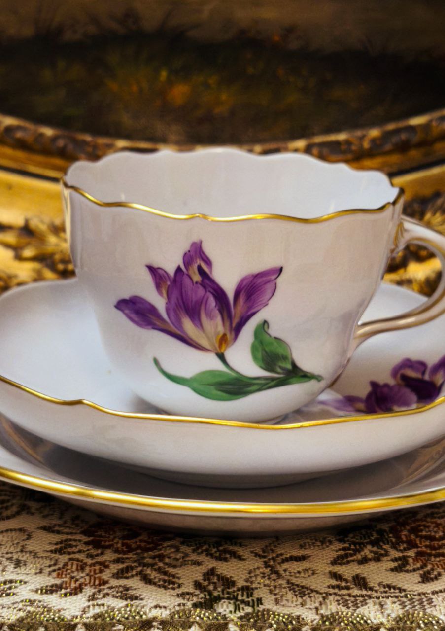 Meissen. Чайное трио с весенним цветком(либо тюльпан, либо крокус).