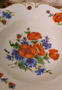 Белоснежный фарфор с изящным рельефным краем и ажурными декоративными элементами. Особое внимание привлекает ручная роспись: яркие маки в сочетании с нежными васильками создают живую, гармоничную композицию, наполненную природной свежестью.