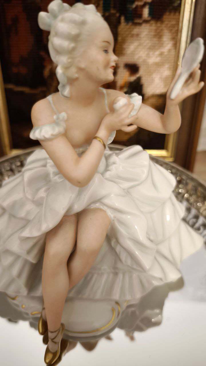 Танцовщица с зеркальцем — изысканная фарфоровая скульптура в духе рококо.