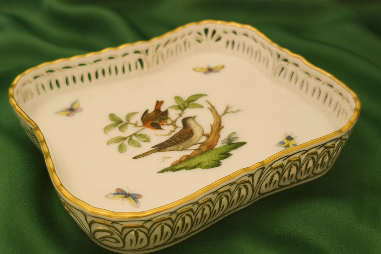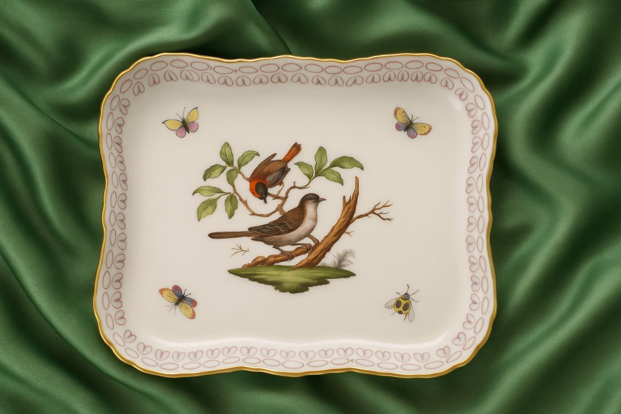 Прямоугольное блюдо ручной росписи. Herend — серия Rothschild Bird