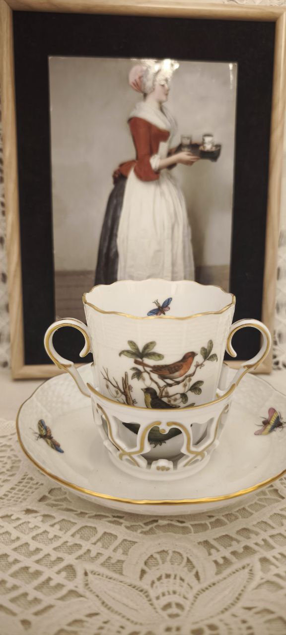 Она появилась в Европе в XVIII веке и предназначалась для горячего шоколада и кофе.
