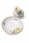 Фарфор тонкий, с лёгким рельефом по краю и аккуратной позолотой. Роспись в классическом европейском стиле: крупный жёлтый цветок в сочетании с нежными синими и розовыми бутонами, дополненный мелкими цветочными акцентами внутри блюдца. Композиция живая, воздушная, с ощущением ручной работы.