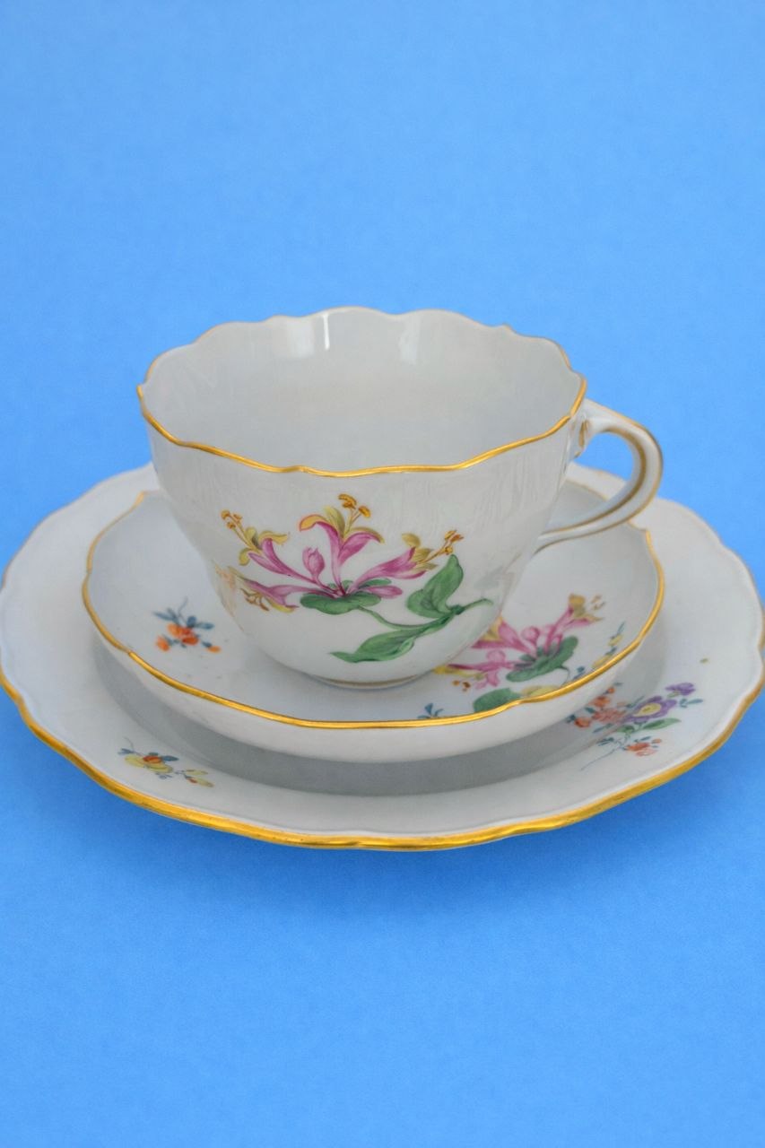 Чайное трио: чашка, блюдце, десертная тарелка.