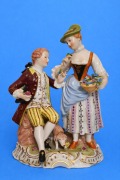 Характерный пример дрезденского фарфора с тщательно проработанными костюмами и декоративными деталями.
