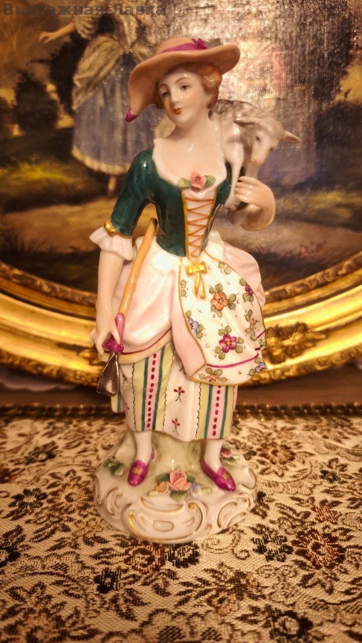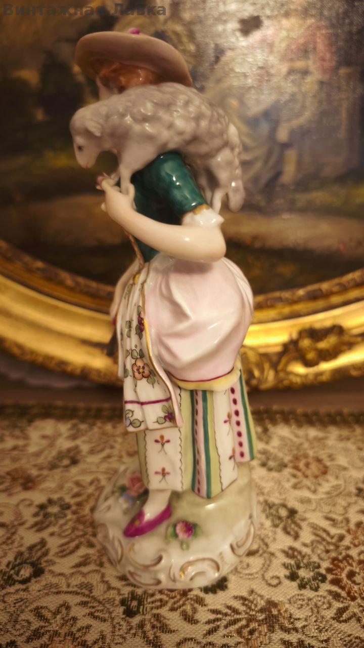 Фарфоровая фигурка “Пастушка с ягнёнком”.