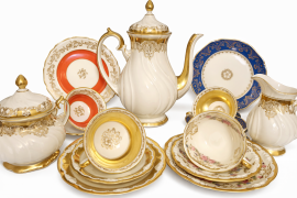 Классические формы, качественный фарфор, богатое золочение.