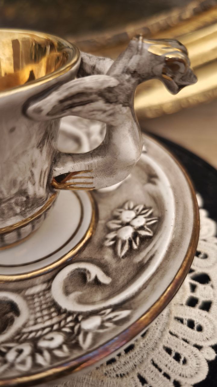 – Редкая кофейная пара в стиле «барокко» с объёмным рельефным декором.
