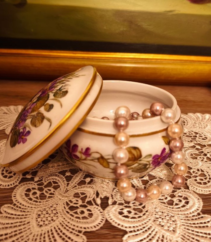 Состояние очень хорошее, без трещин и сколов. Шкатулка подходит для хранения украшений, брошей, небольших сувениров. Коллекционный и интерьерный предмет, тёплый в подаче, дающий ощущение классического европейского фарфора.