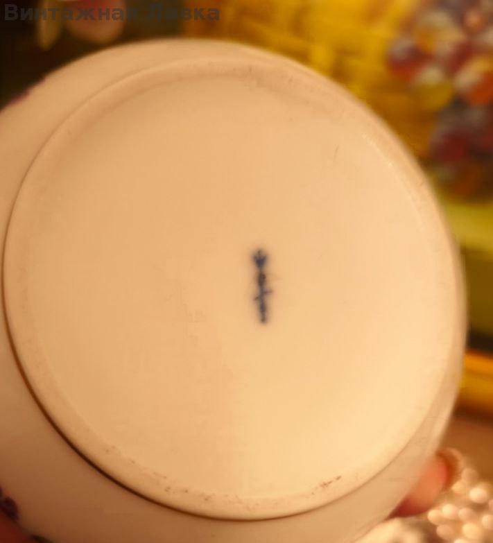 ⚜️ синим знаком на донышке обозначен KPM (послевоенный период, студийная роспись по белому фарфору)