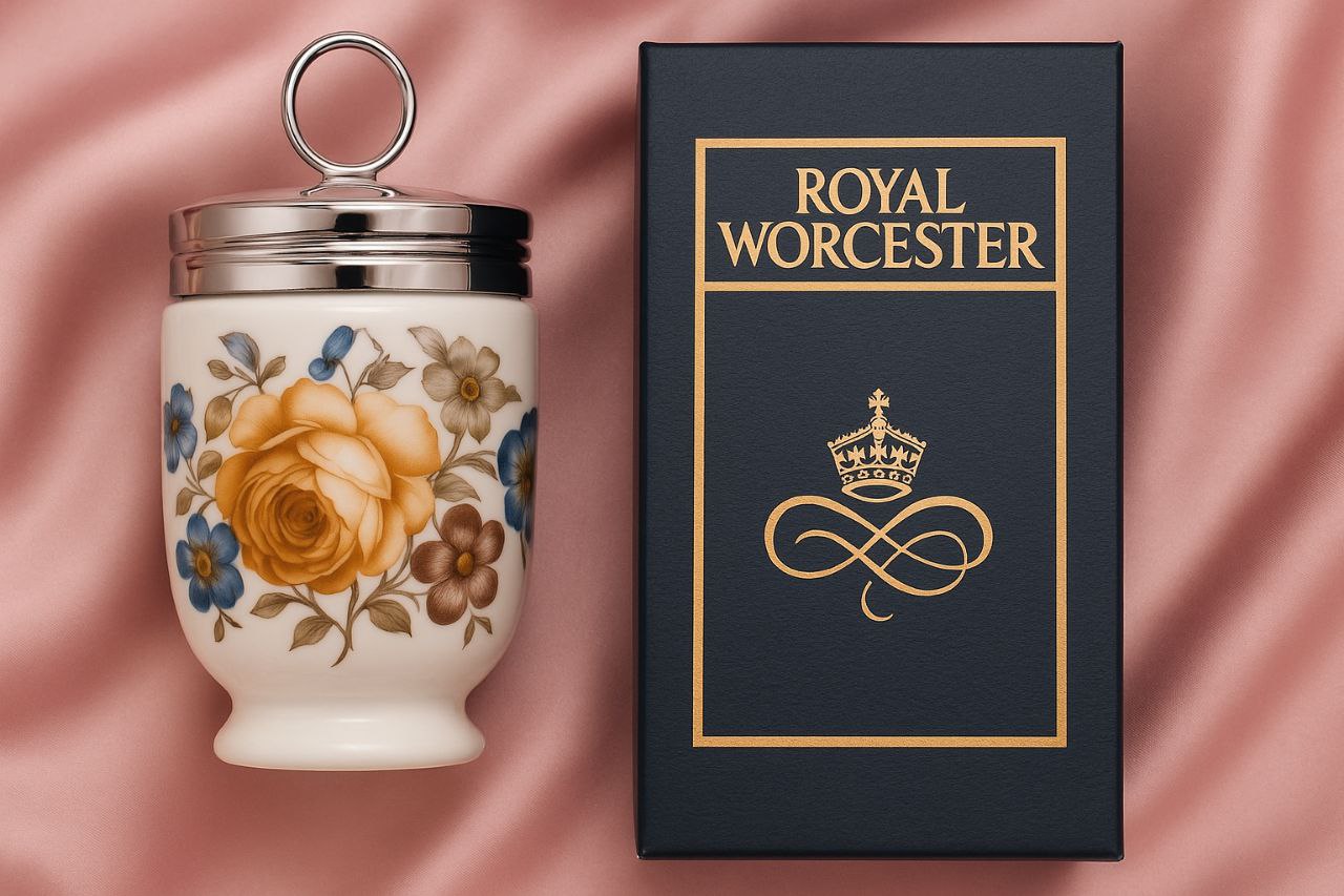 Коробка тёмно-синего цвета с золотым логотипом Royal Worcester.