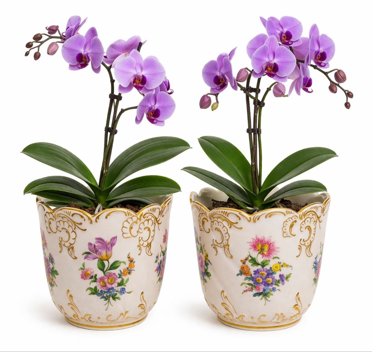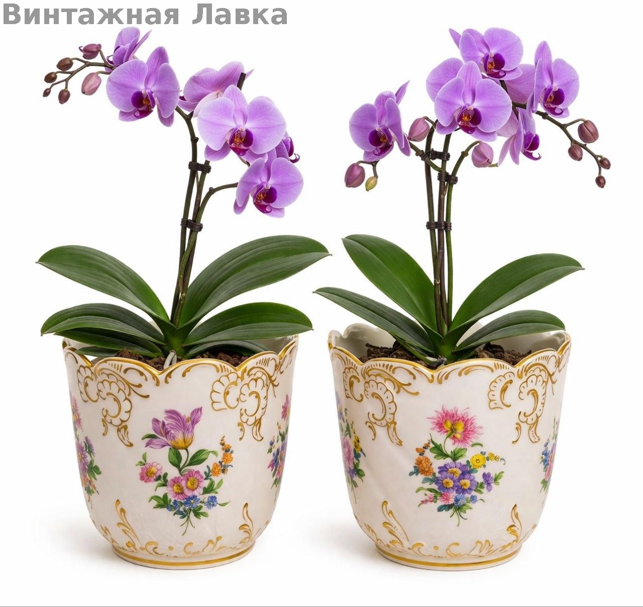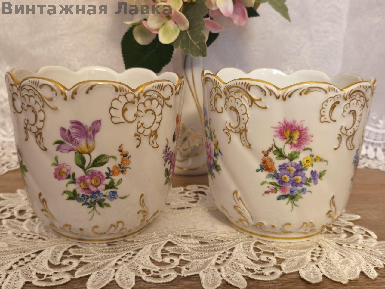 Изящная пара антикварных кашпо из дрезденского фарфора — утончённая классика с характером эпохи.