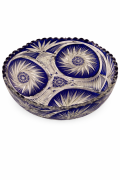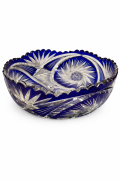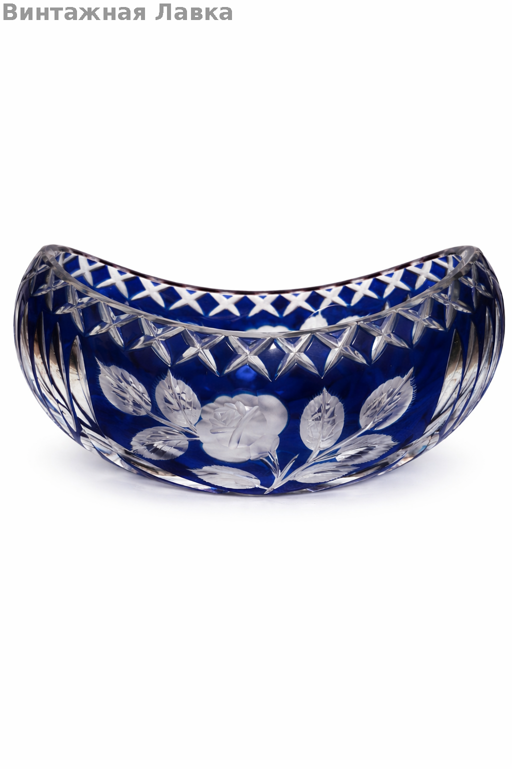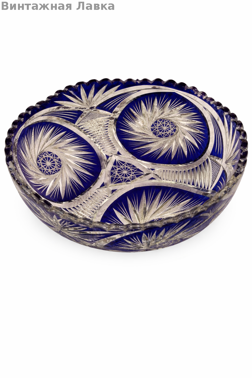 Синяя ваза-конфетница -немецкий накладной прорезной хрусталь