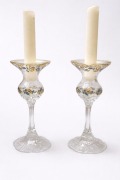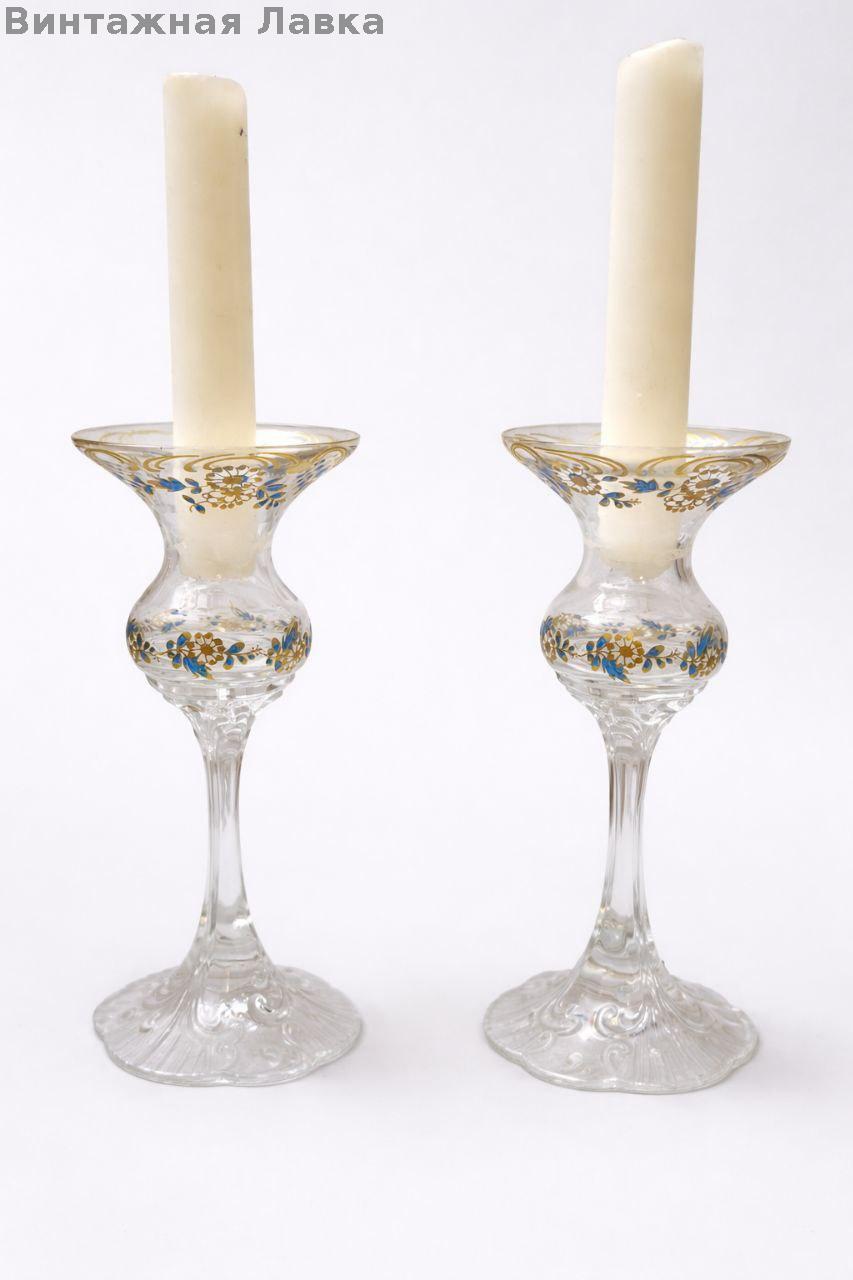 Изящные стеклянные подсвечники с характерным для серии «Sanssouci» утончённым силуэтом и деликатным орнаментом в золоте с голубыми акцентами.