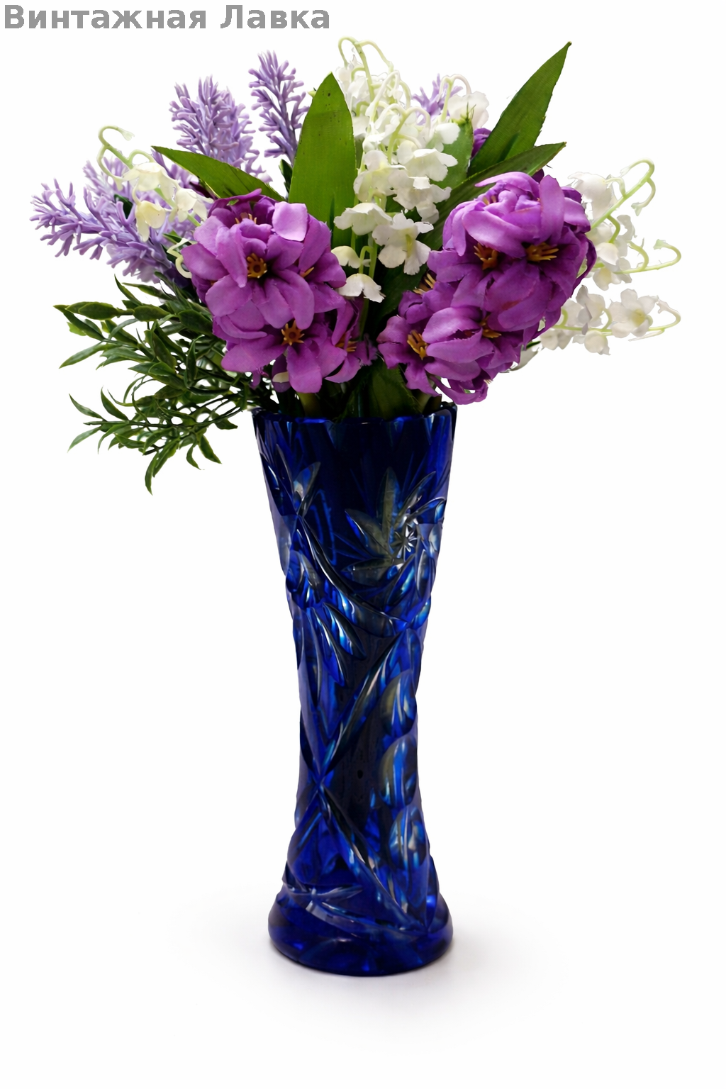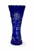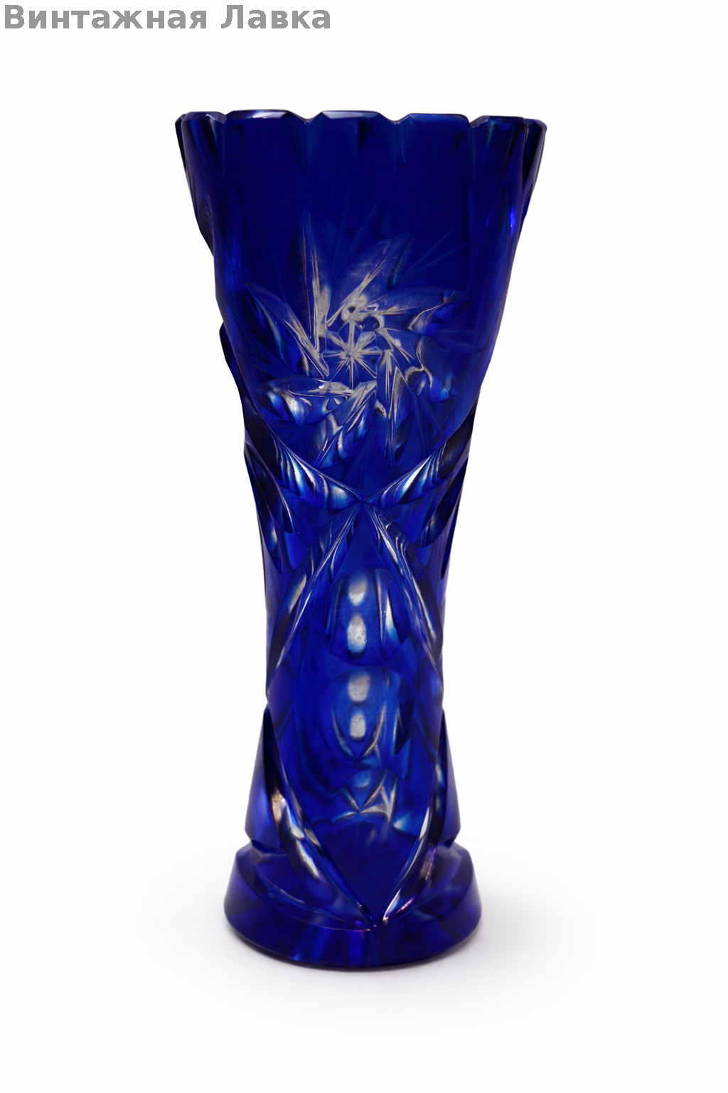 Кобальтовая хрустальная ваза с глубокой ручной огранкой.