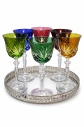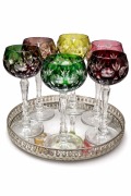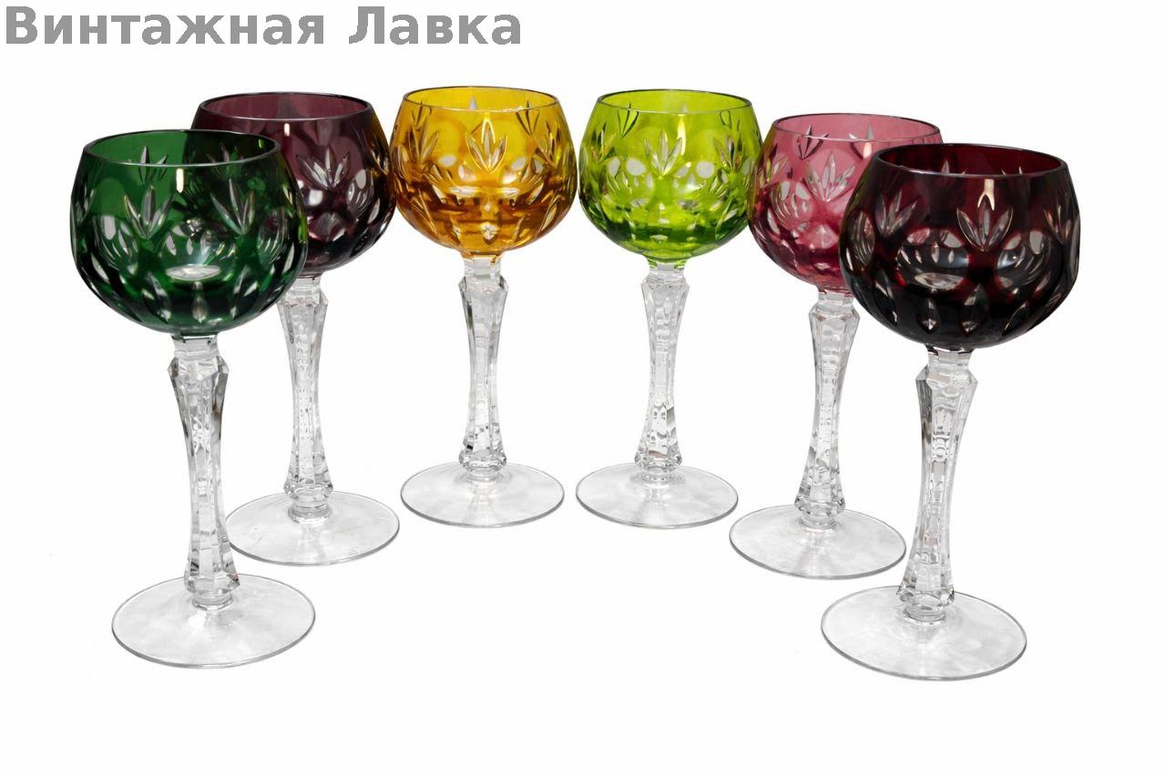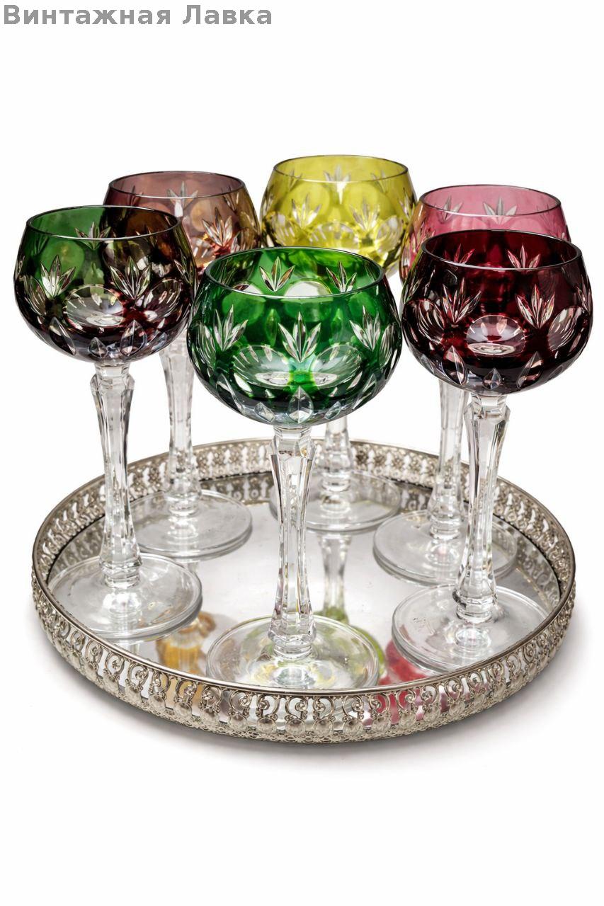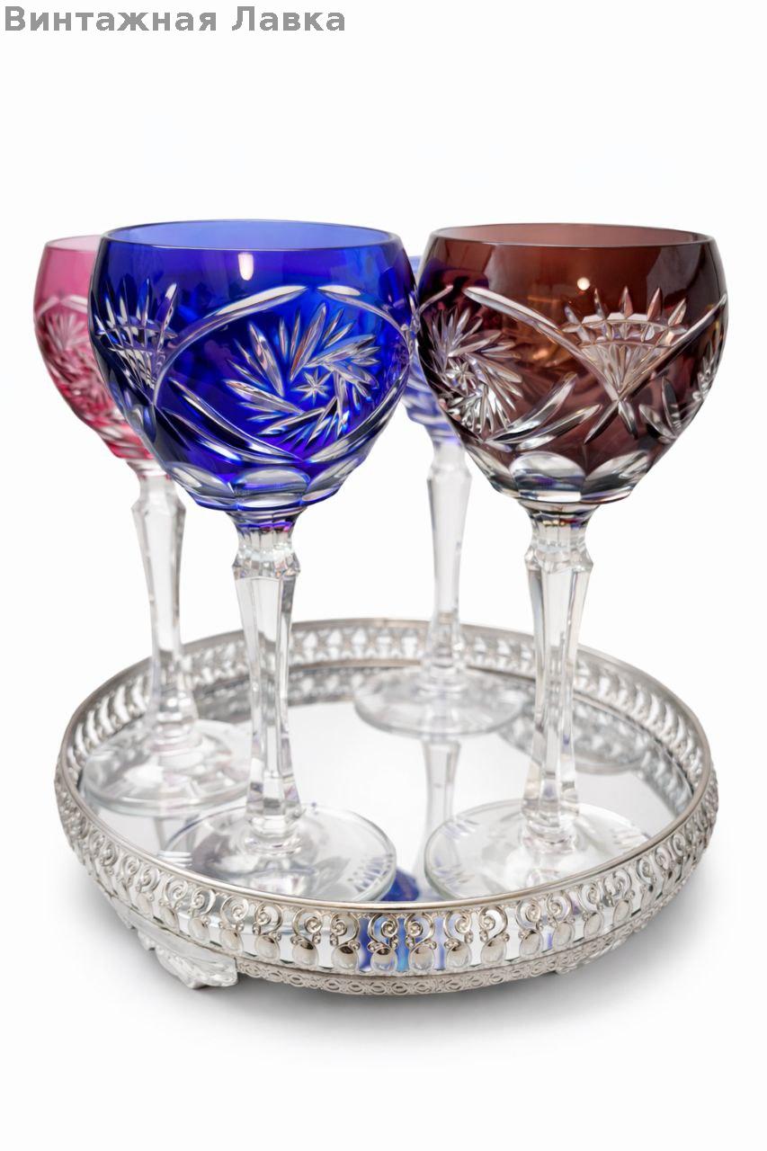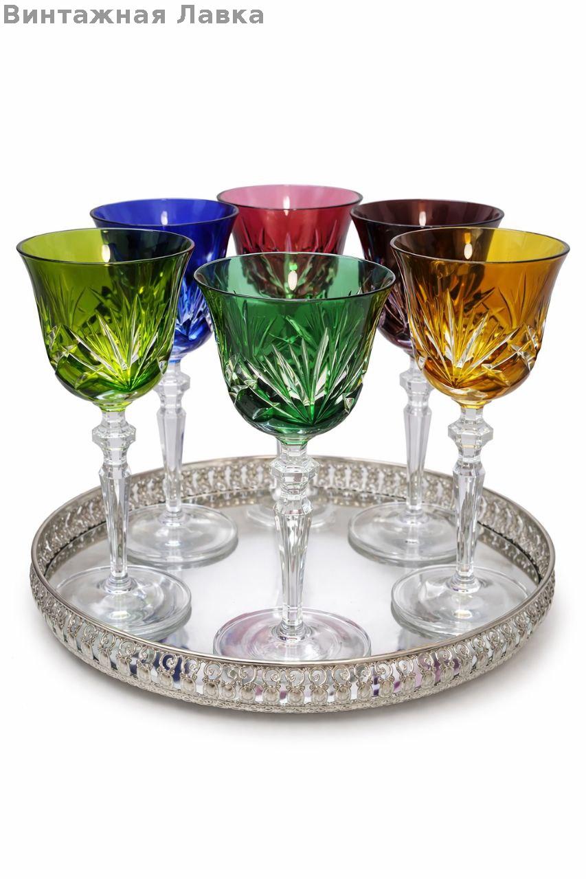 Эффектный комплект цветных хрустальных бокалов с глубокой ручной огранкой.