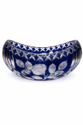 Техника накладного прорезного хрусталя (overlay cut-to-clear) — глубокая ручная огранка по насыщенному кобальтовому накладному слою.