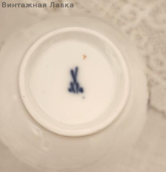На дне — подглазурное клеймо скрещённые мечи, подтверждающее производство мануфактуры Meissen.